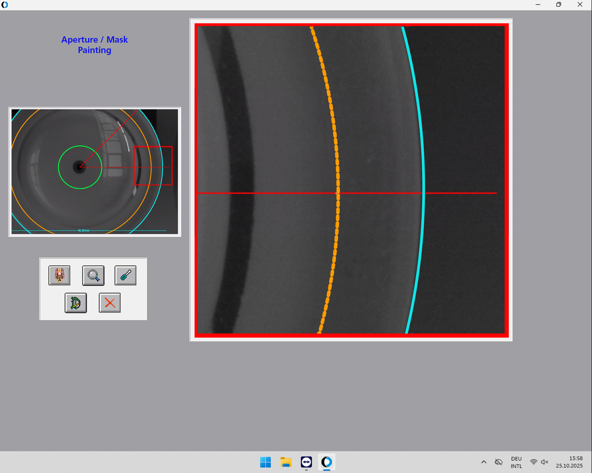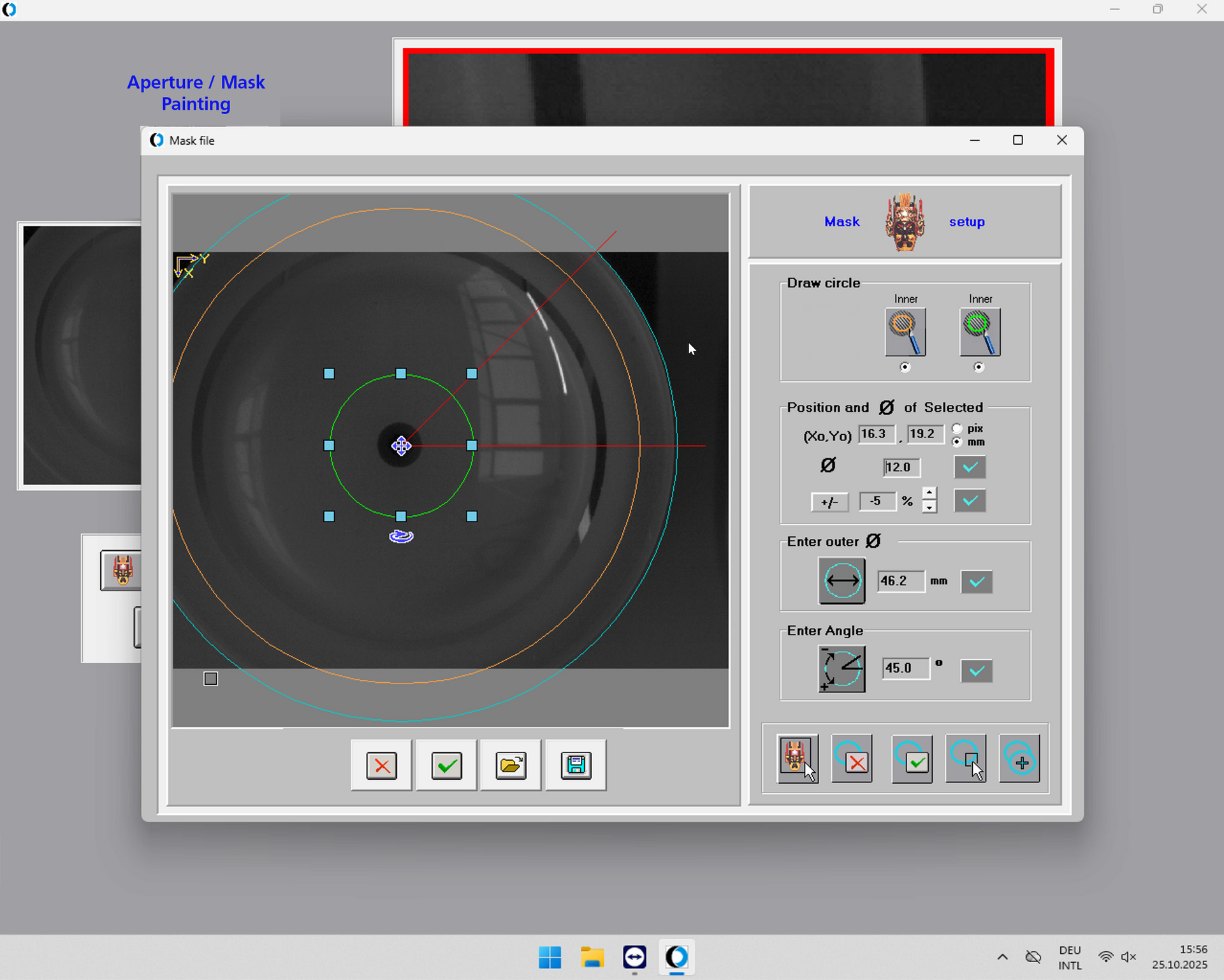 - exact adjustment of aperture mask for painting limits via software and precise gauge